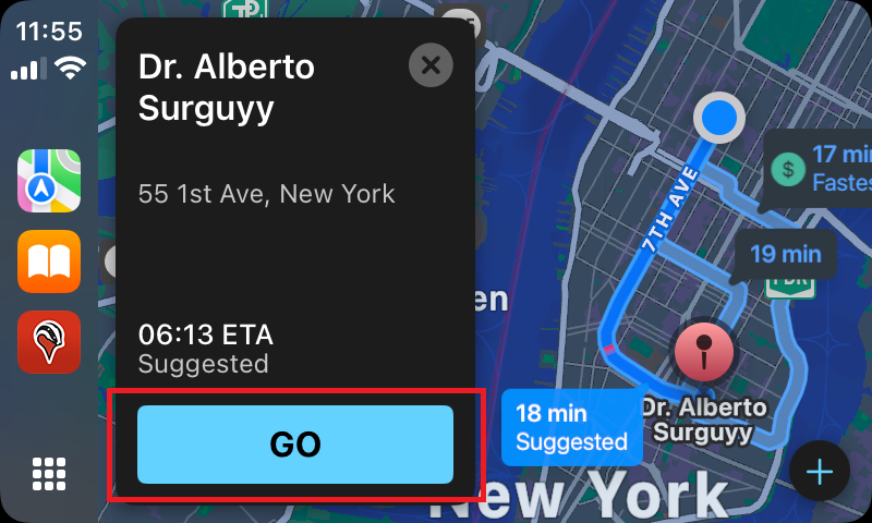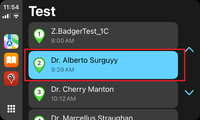 3. Once opened, go back to CarPlay and you’ll see that your route has appeared on your car’s display screen. Choose the route stop that you’d like to go to.