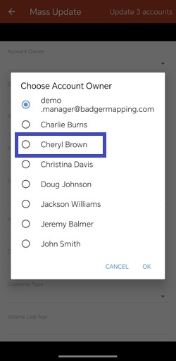 3. Select the new account owner from the list.