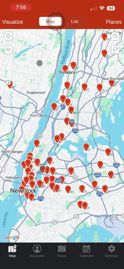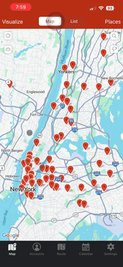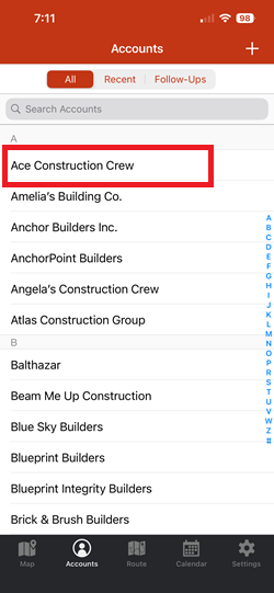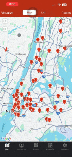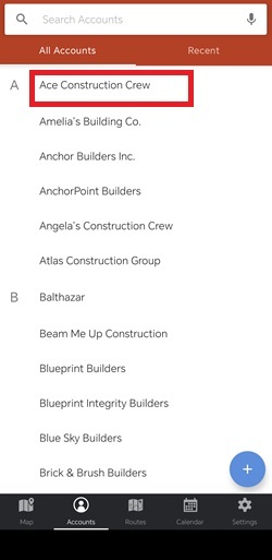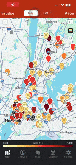 For example, if you’re in the dental equipment industry and you already have appointments to meet dentists in your territory, you can use the Places tool to search for orthodontists also in that area. Add interesting leads to your accounts list to be able to take notes and record check-ins. This means that you’ll never lose track of this lead and be able to add them to your routes whenever you want.