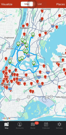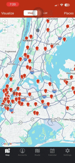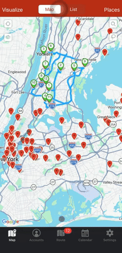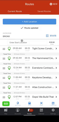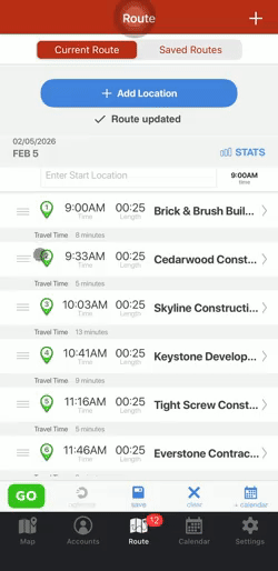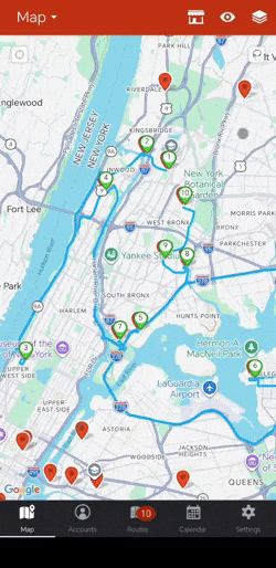 If you would like to change the order of your route, you can click on the three grey lines next to the lettered pin of the account you would like to change. Now, you’ll be able to drag the account to where you would like it on your route. Just make sure not click on Optimize because this would rearrange your route stops.