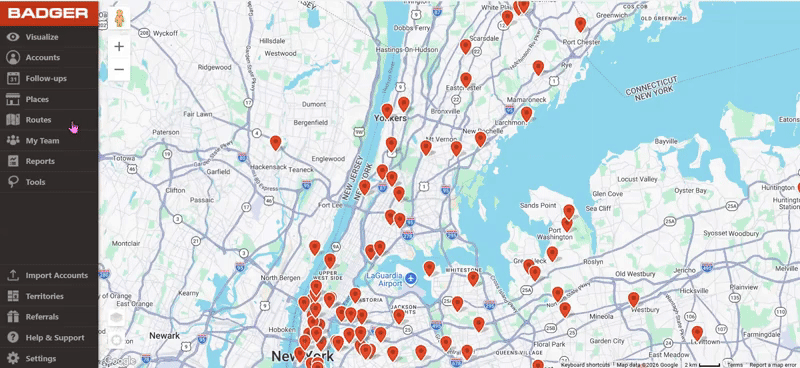 Learn moreBadger Map’s focus is helping you create optimized sales routes so you can save time and sell more. You can view your current routes and saved routes in the “Routes” tab.