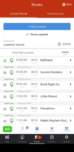 Routes stats is a nifty and efficient way of knowing how long your route will take, how much you’ll be driving and breaks down your day by meeting time versus traveling time.